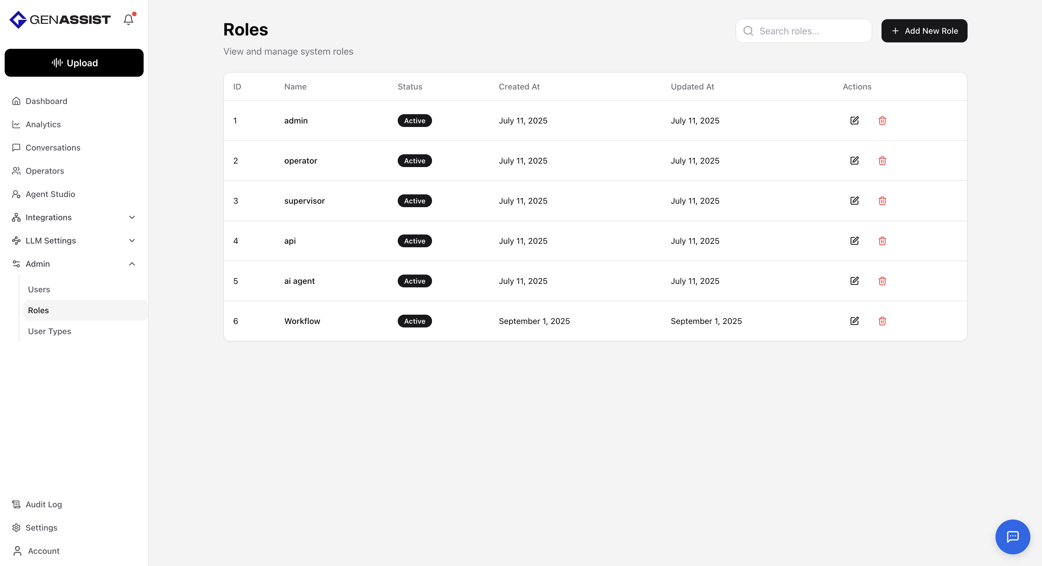 To manage roles, navigate to Admin → Roles from the main navigation menu. This will display a list of all existing roles.