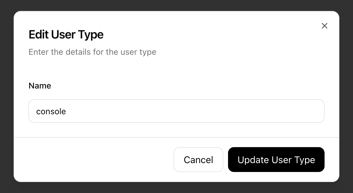 - The Edit User Type dialog will appear, prefilled with the user type's name.