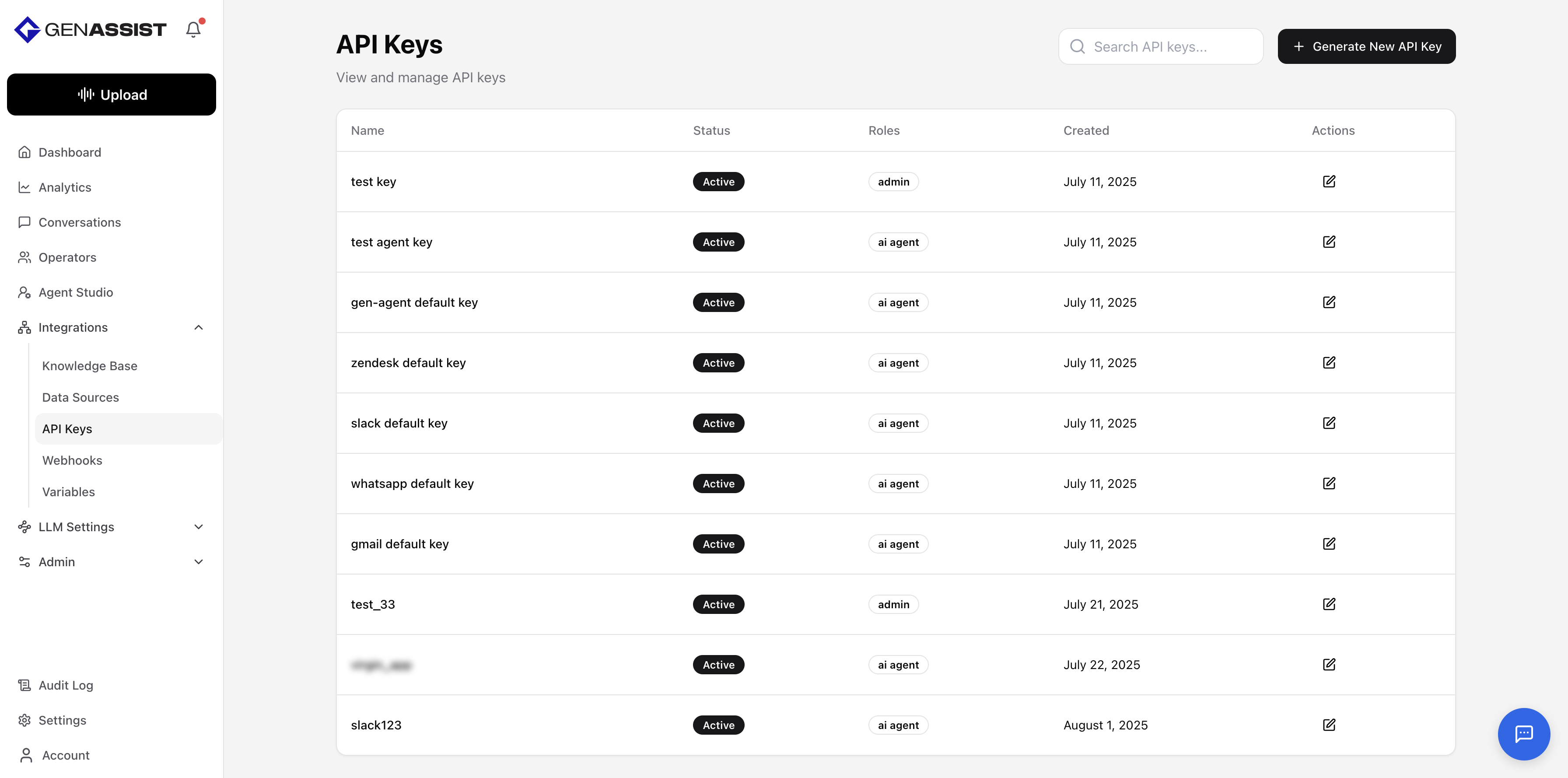 API keys provide a way to authenticate external applications or scripts that need to interact with the GenAssist platform.