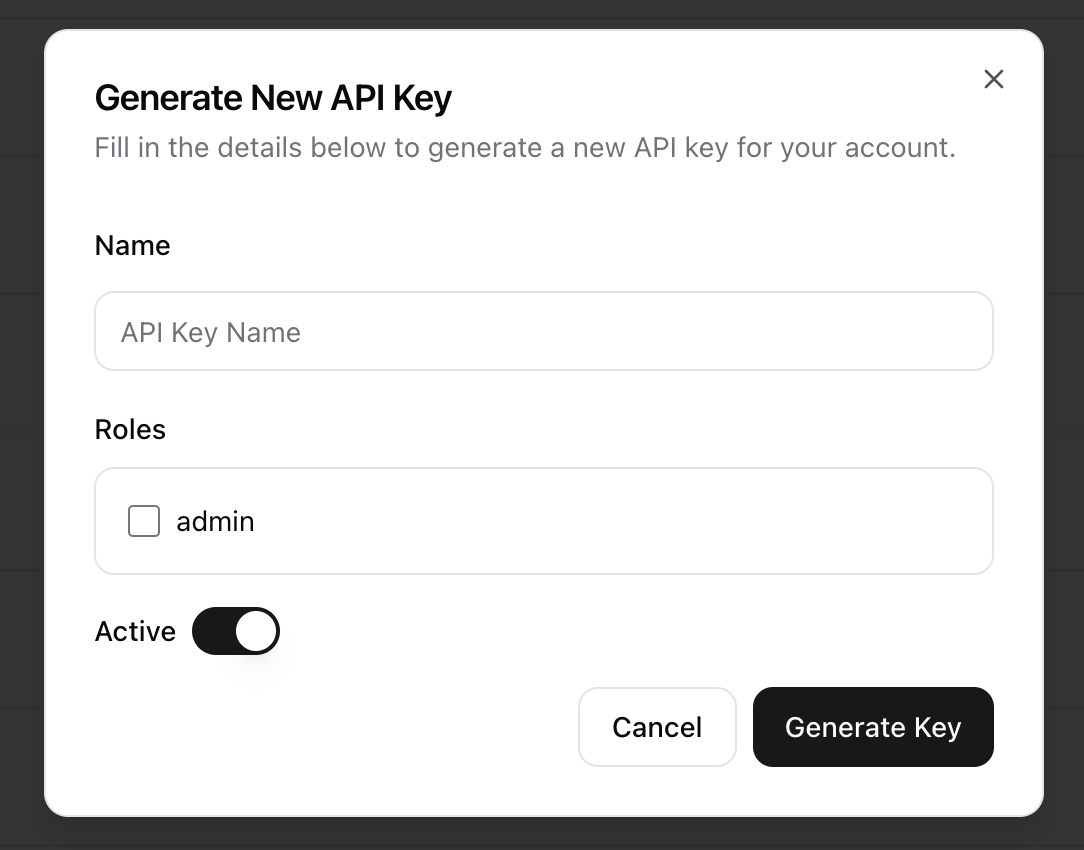 - The Generate New API Key dialog will appear.