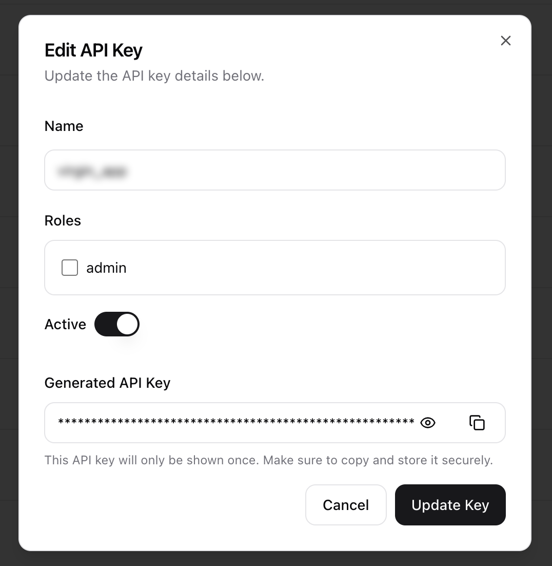 - Click Update Key to save the changes.