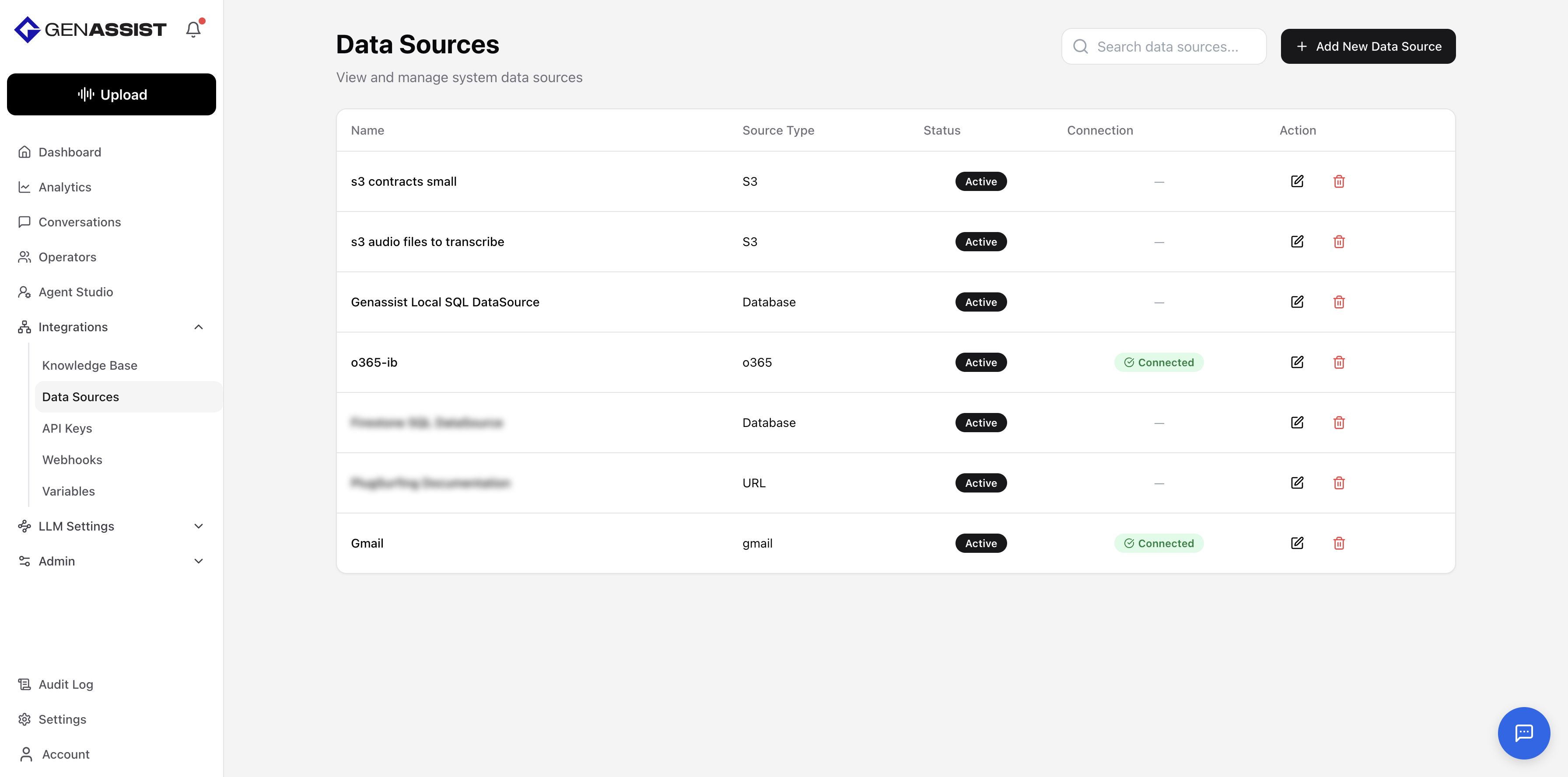 A data source is a reusable connection to a location where your information is stored, such as cloud storage, a database, or a web page. Centralizing these connections makes them available for various tasks within GenAssist. For example, creating a knowledge base requires selecting a preconfigured data source from which to ingest documents.