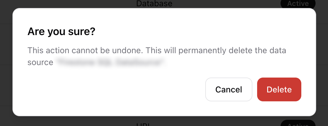 - Click Delete to permanently remove the data source.